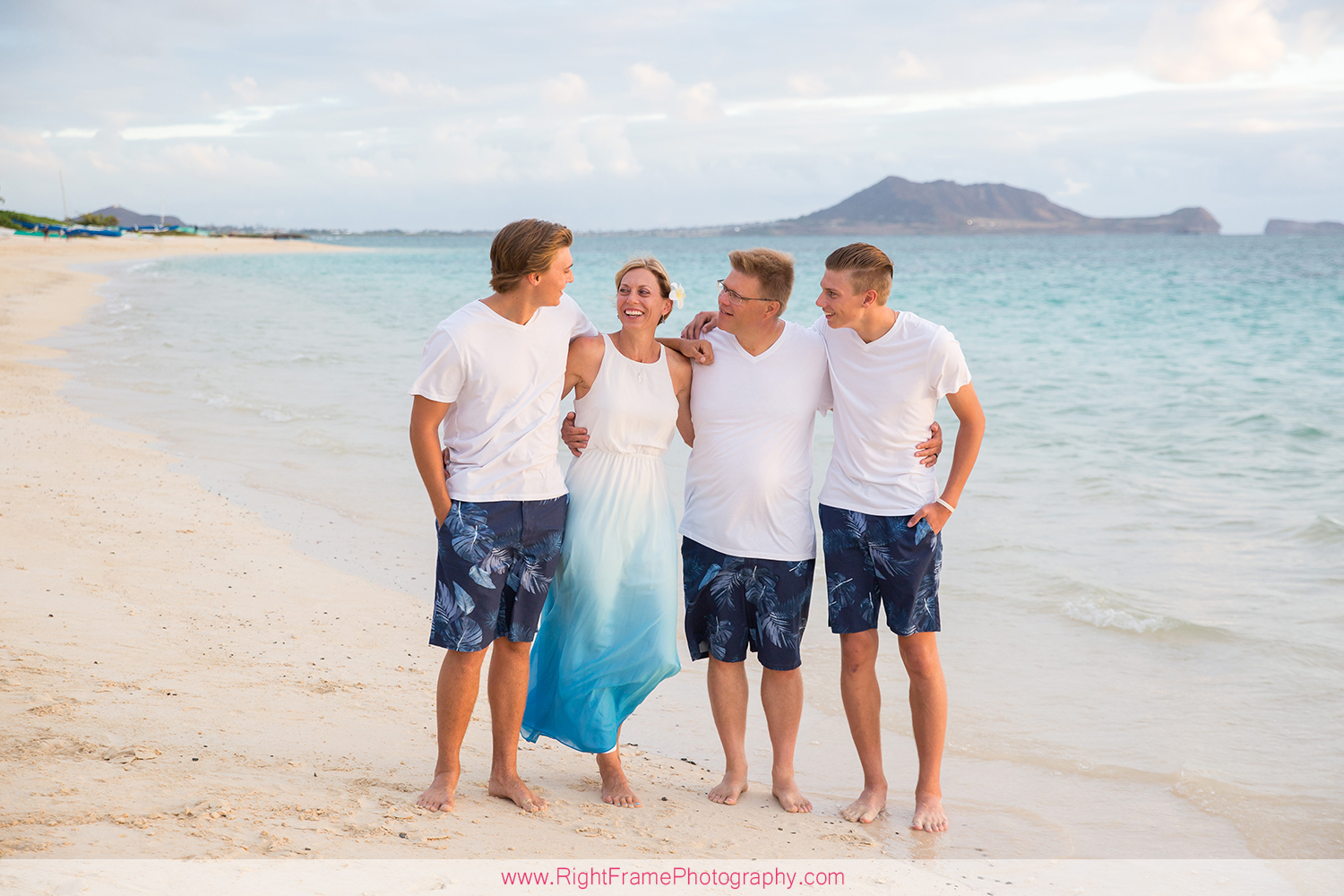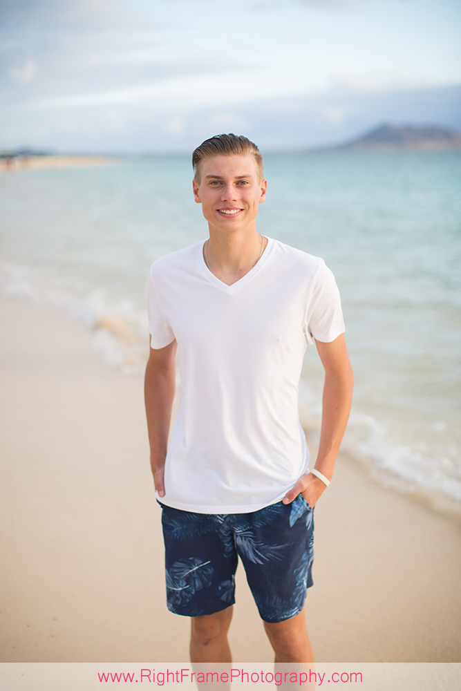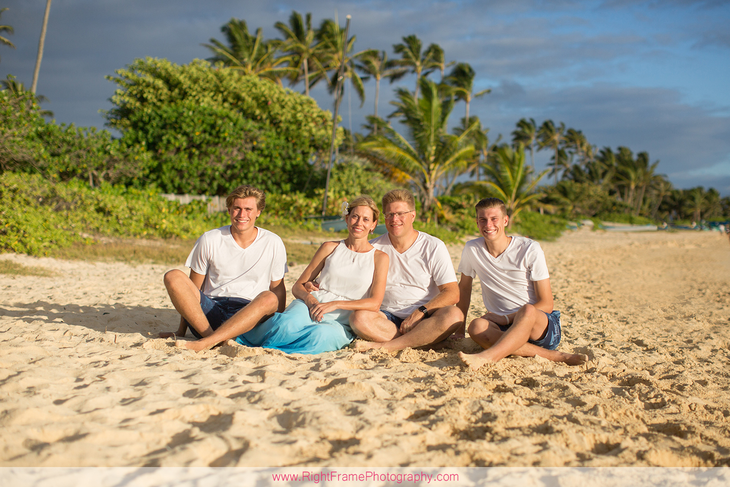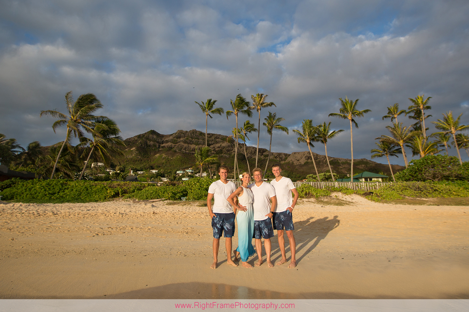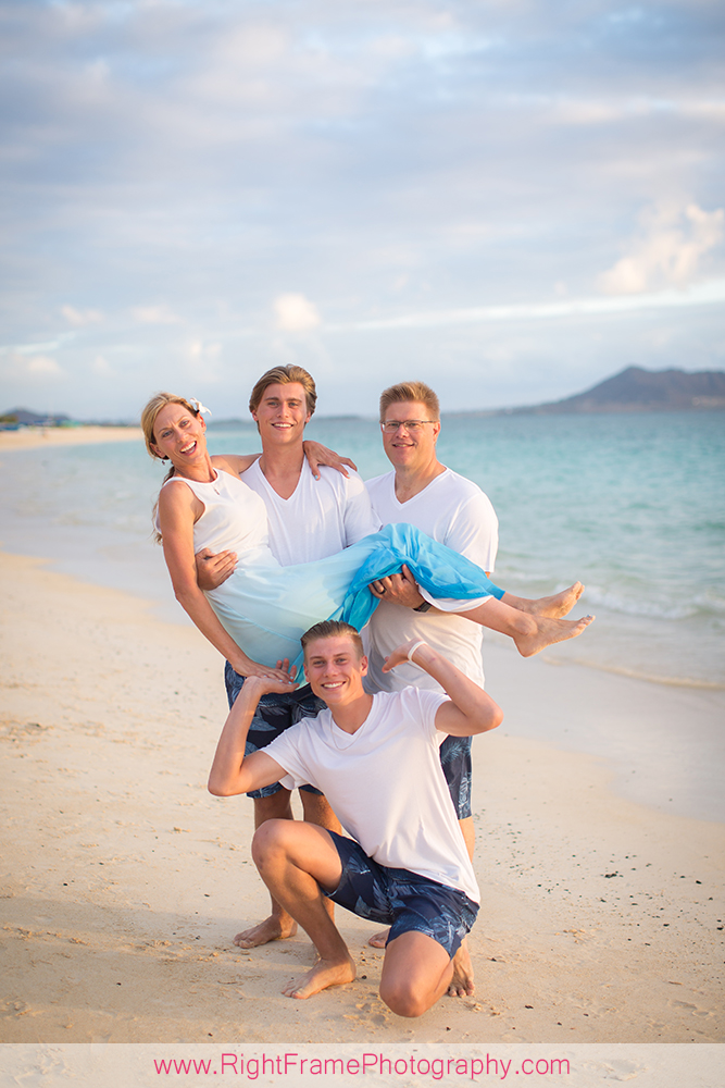 Sunrise Lanikai Beach Family Portrait, Oahu Hawaii. Photographed by Kailua Photographer – Right Frame Photography.