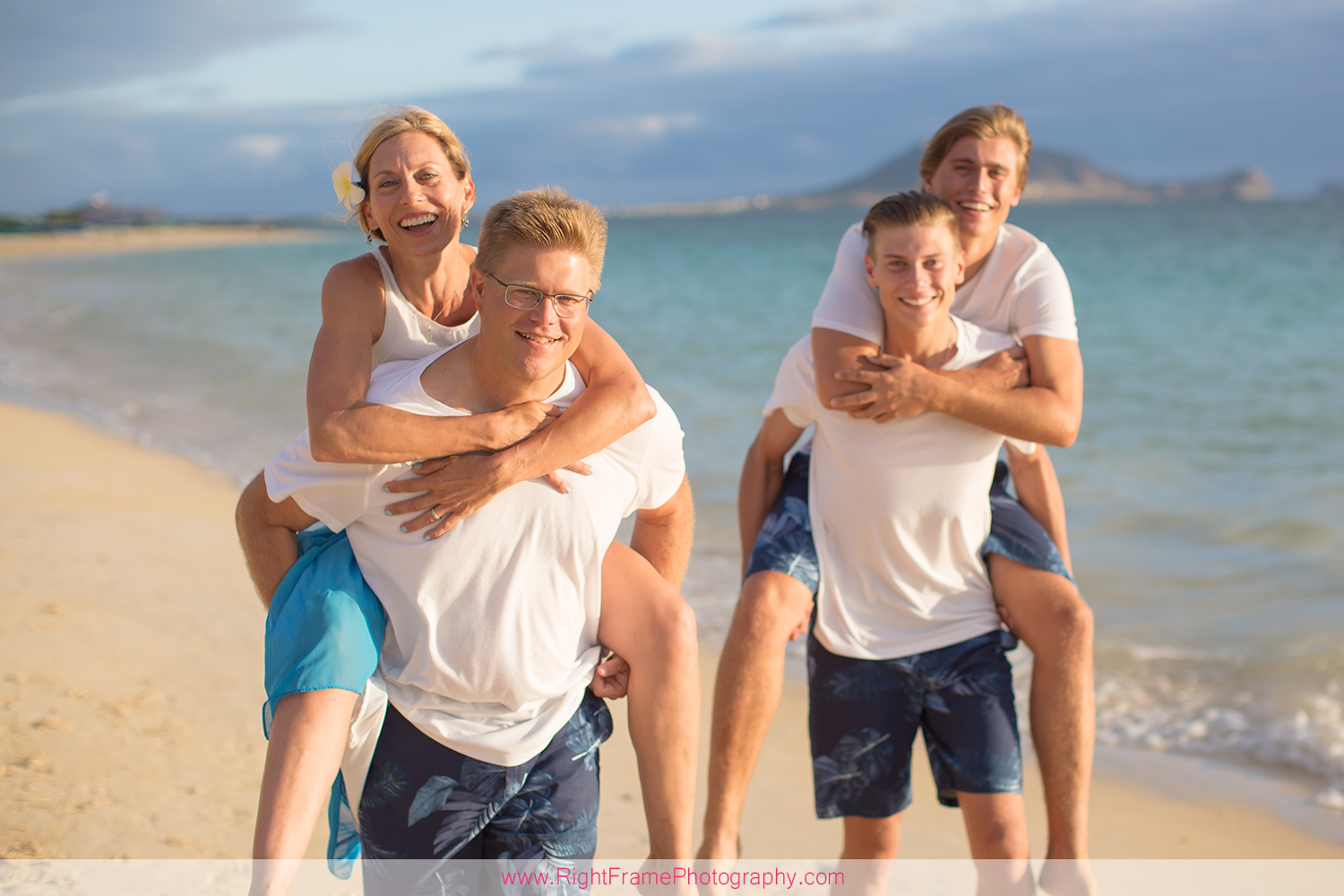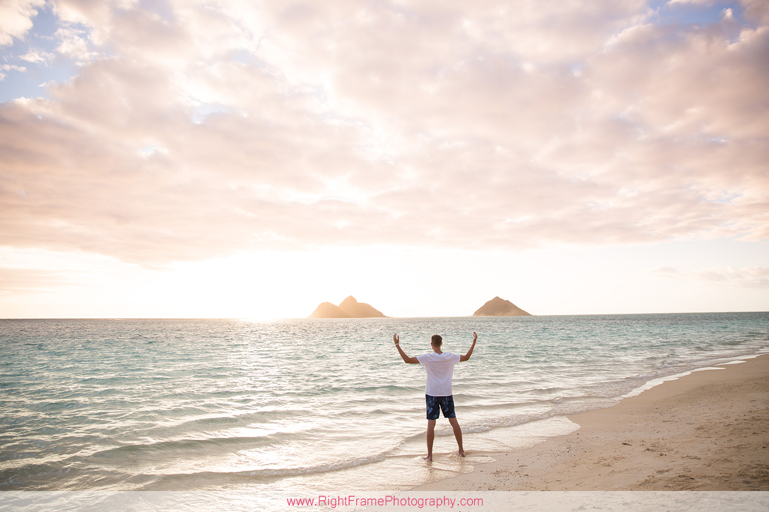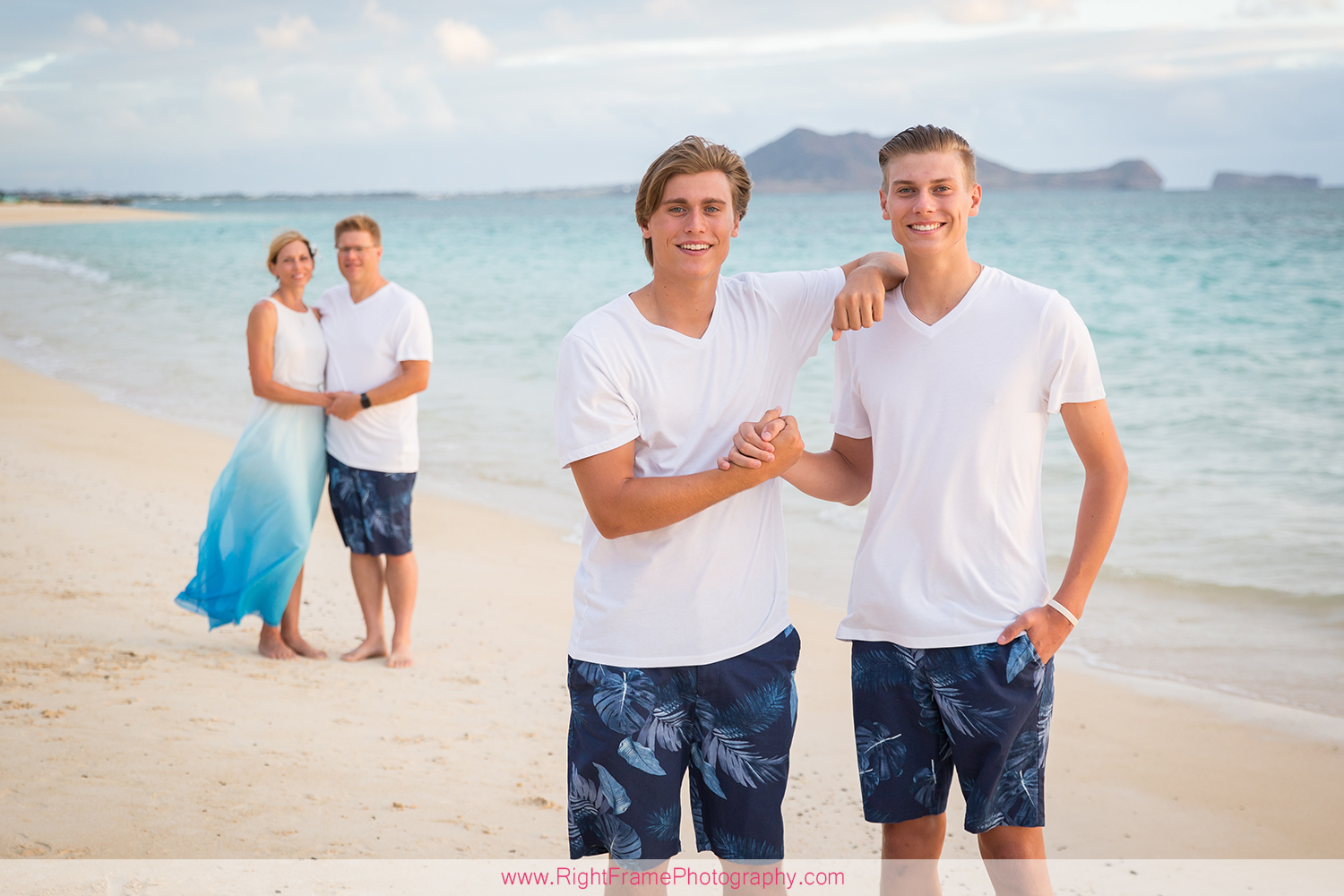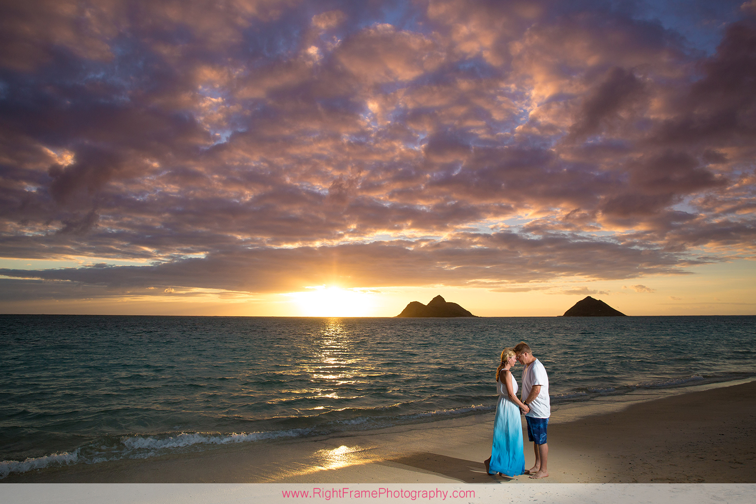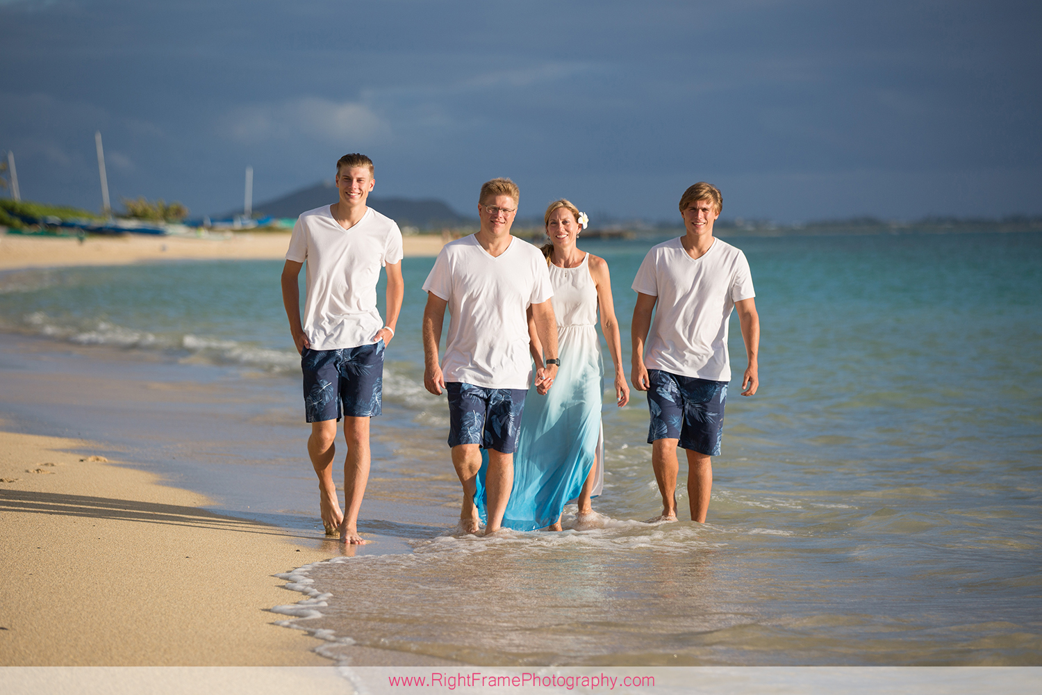 Sunrise Lanikai Beach Family Portrait, Oahu Hawaii. Photographed by Kailua Photographer – Right Frame Photography.