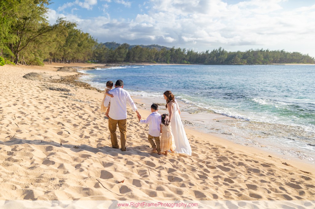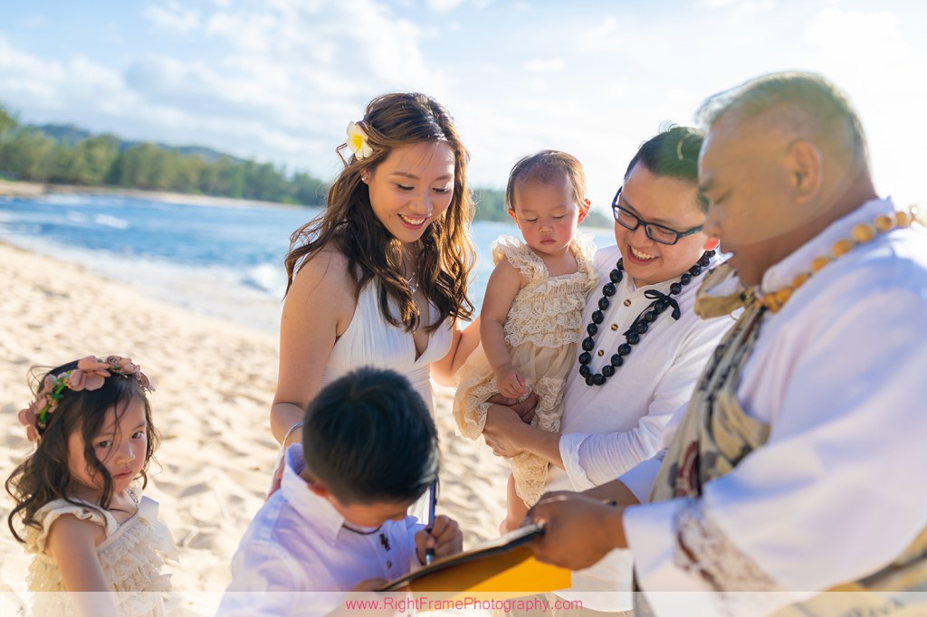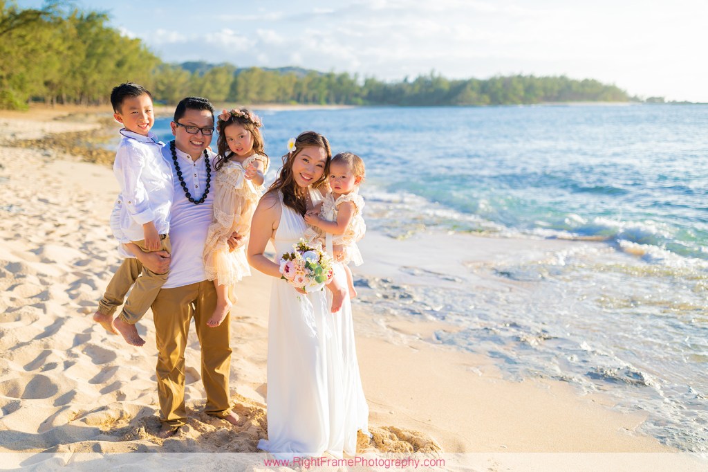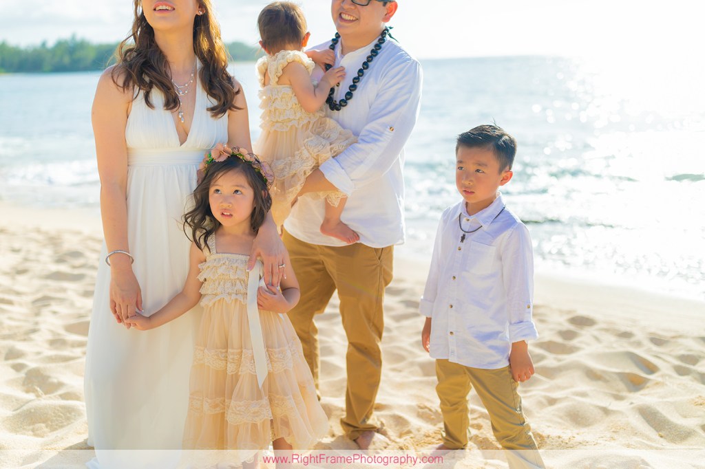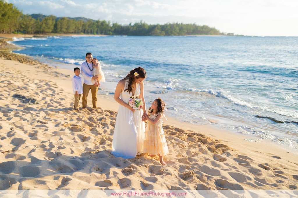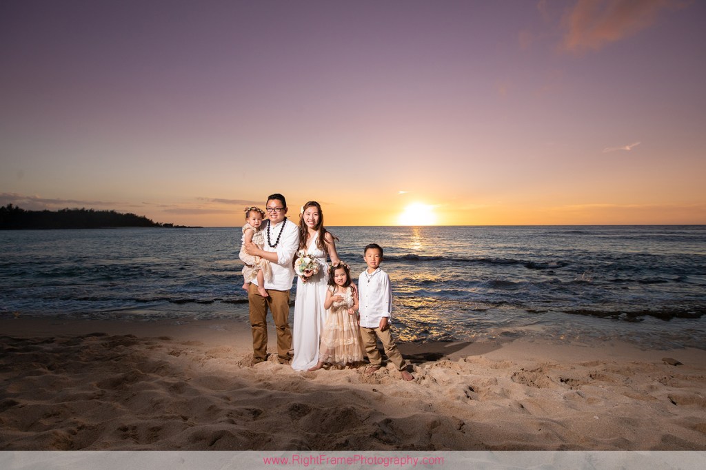 Turtle Bay Vow Renewal Photography – family sunset vow renewal ceremony near Turtle Bay Resort at Stables Beach, Oahu.