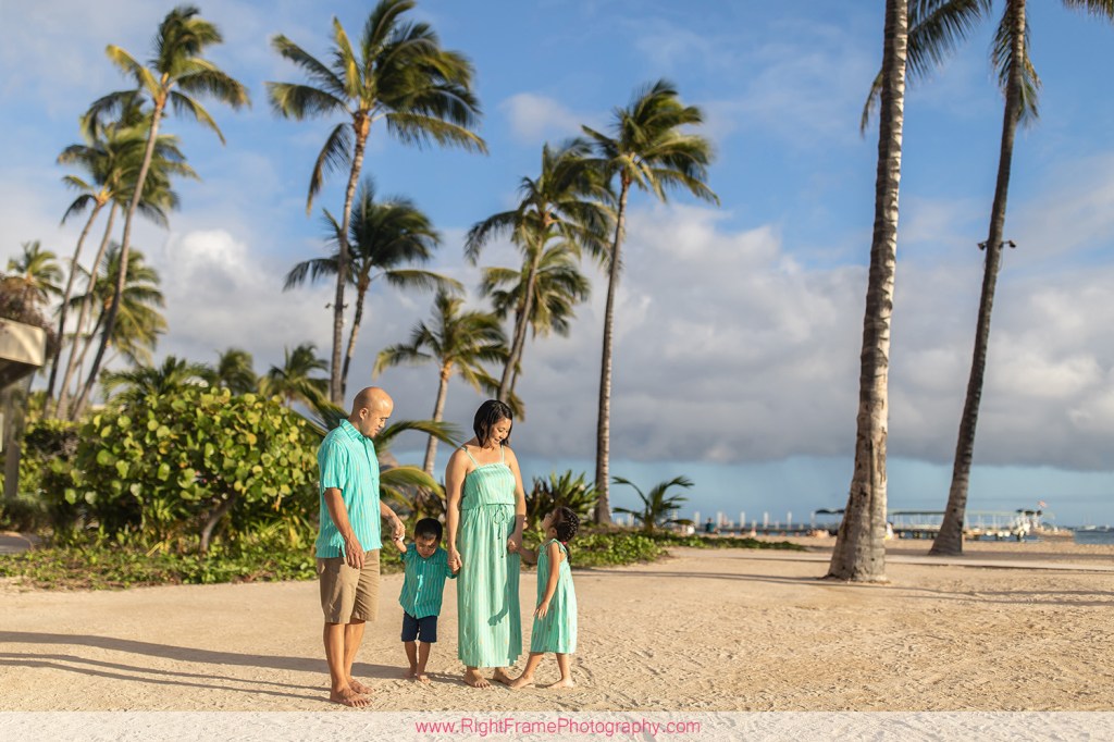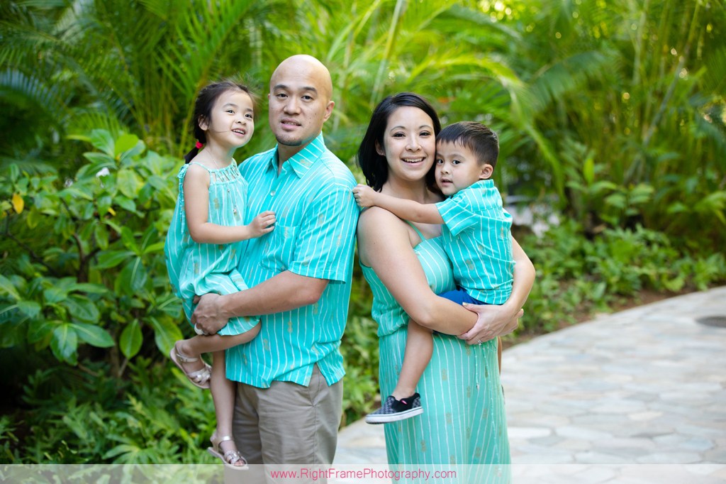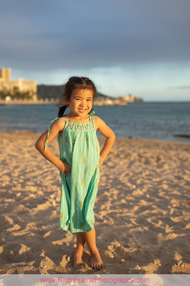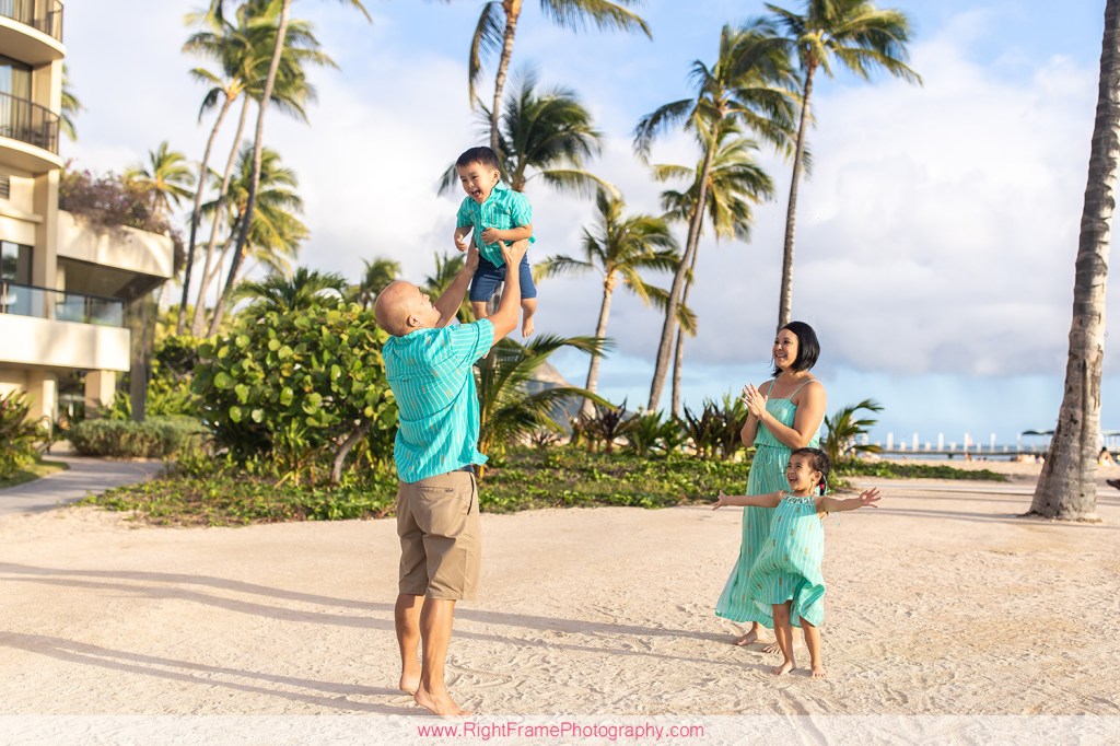 Waikiki Family Photographer – Sunset family pictures near Rainbow Tower in Waikiki.